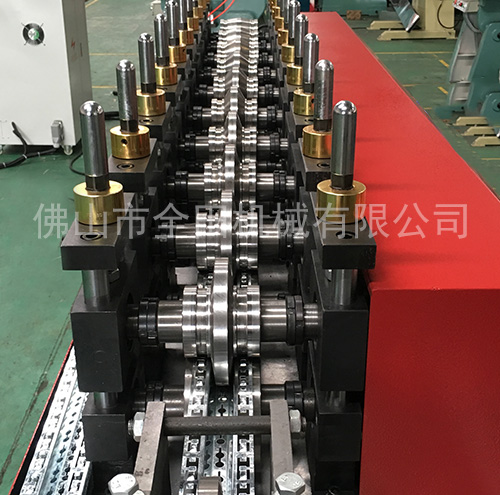 龙骨机是以带钢为原料、通过连续冷轧成型,生产复杂的断面型材(产品有:轻钢龙骨、烤漆龙骨、卡式龙骨、各种建筑型材、钢构、钢衬门框型材、高速护拦等)和不同规格的冷弯、烤漆机组设备,采用PLC控制。